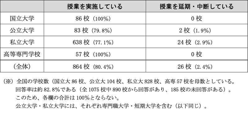 新型コロナウィルス感染症(COVID-19)の世界的拡大は、私たちがこれまで何気なく送ってきた日常をあっという間に奪い去り、社会のあり方、人と人との関わり方を大きく変えました。5月下旬に文部科学省が発表した「新型コロナウィルス感染症の状況を踏まえた大学等の授業の実施状況」によれば、全国の大学・高等専門学校(以下「大学等」と略記)のうち、約8割の大学等が授業を実施していると言います(5月20日時点)。またそのうちの9割は遠隔授業を実施しており、教育現場においても学生・教員共に大きな環境の変化を強いられている状況です。