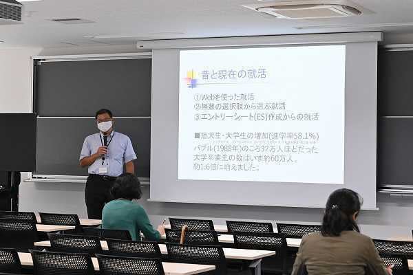 さらにキャリア支援担当の教員からは、現在の就職状況について、厳しい就活競争を生き抜くためのポイントなどを分かりやすく説明して頂きました。