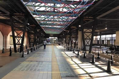 改札口を出て最初に目に入るのは、プロムナードです。ここがすでに学生の興味を引きました!