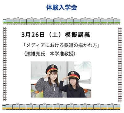 次回、3月26日(土)体験入学会の模擬授業のテーマは、「メディアにおける鉄道の描かれ方」です!