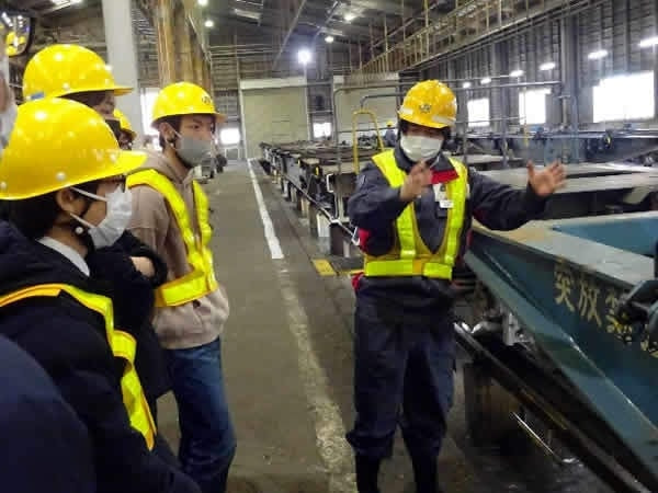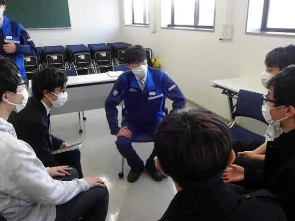専門知識に裏付けられた丁寧な説明に、学生達も興味津々です!先輩、頼もしいですね!全国の物流を支えるために、日々安全を最優先して検査や修理が行われていることを知って、みんな感慨深げでした。