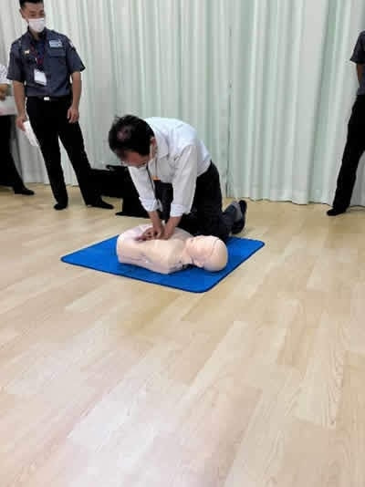 また心臓マッサージからのAEDの装着実習では、田邉教授にも積極的に参加していただけました。