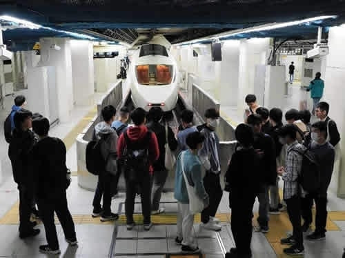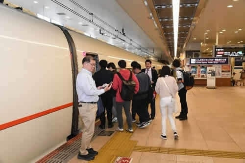 楽しい時間はあっというまにすぎ、15:30には皆を乗せたVSEは新宿駅に戻りました。降車したあとも名残惜しそうに、学生たちはVSEをながめていました。