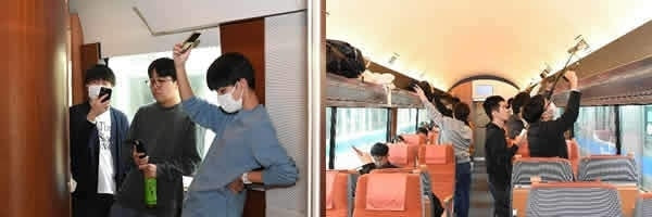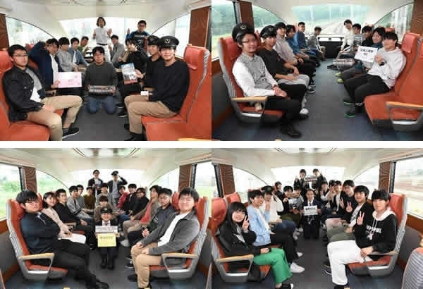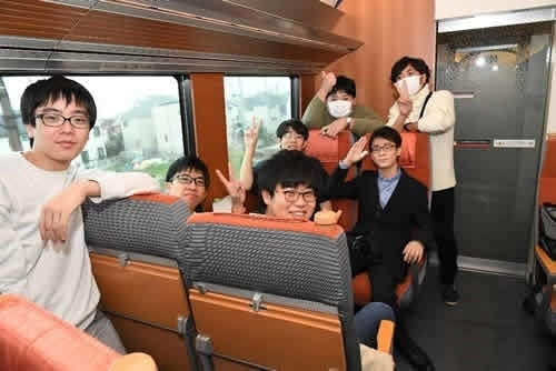 皆さんいい笑顔です! この後展望席は学生に開放され、迫力ある前面展望を見ながら学生たちが談笑していました。