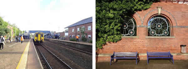 やってきました、ストックトン。駅は結構簡素なつくり…。 ただ、駅にはそれらしく機関車の車輪と煙突みたいなものが。