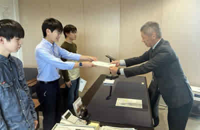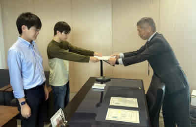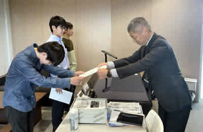 2025年9月27日(月)に2025年度プログラム修了者に対して修了証の授与式を執り行いました。当日は、本学でプログラムを修了した学生3名に対し、中野学長から一人ひとりに修了証が手渡されました。学生たちは、緊張した面持ちの中にも達成感あふれる表情で証書を受け取っていました。