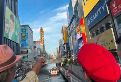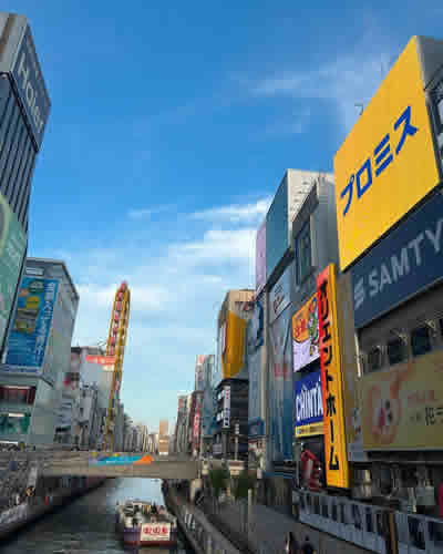 そこから歩いて行き、道頓堀に到着!平日なのにたくさん人がいました。やはり人気の観光場所ですね。