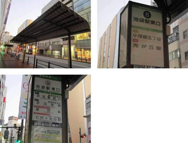 (8)大学の最寄りのバス停は「池袋四丁目」です。どのバスに乗っても、「池袋四丁目」は四つ目です。