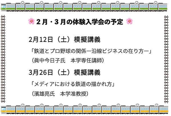 今は、ネットでいろいろな史料に接することが出来る時代です。そうした史料の読み込みや政策への理解を深めることができるのは、経済学や情報科学や歴史学など多様な学問分野の専門家が集まる本学の強みです! 鉄道「を」学ぶことと、鉄道「で」学ぶことを高度に両立できる恵まれた環境の本学に、ぜひお越しください。体験入学会やオープンキャンパスなど、さまざまな機会を用意してお待ちしております。