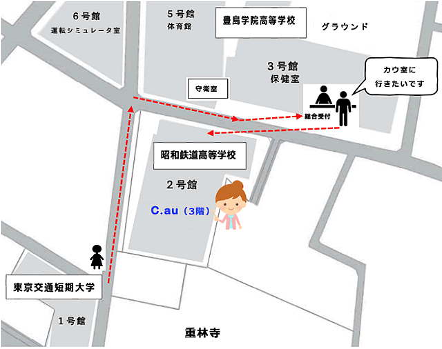 豊昭学園(豊島学院高校・昭和鉄道高校・東京交通短期大学)には、C.au(カウ)というカウンセリングルームがあります。C.auは、生徒・学生の皆さんが、日頃の人間関係や勉学のこと、部活のこと、家庭のこと、心身の健康等で困ったときに、何でも相談できるところです。