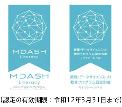 本学では,2024年度よりすべての学生向けに数理・データサイエンス・AI教育プログラムを開始し、2025年8月に文部科学省「数理・データサイエンス・AI教育プログラム(リテラシーレベル)」に認定されています(認定有効期限:令和12年(2030年)3月31日)。