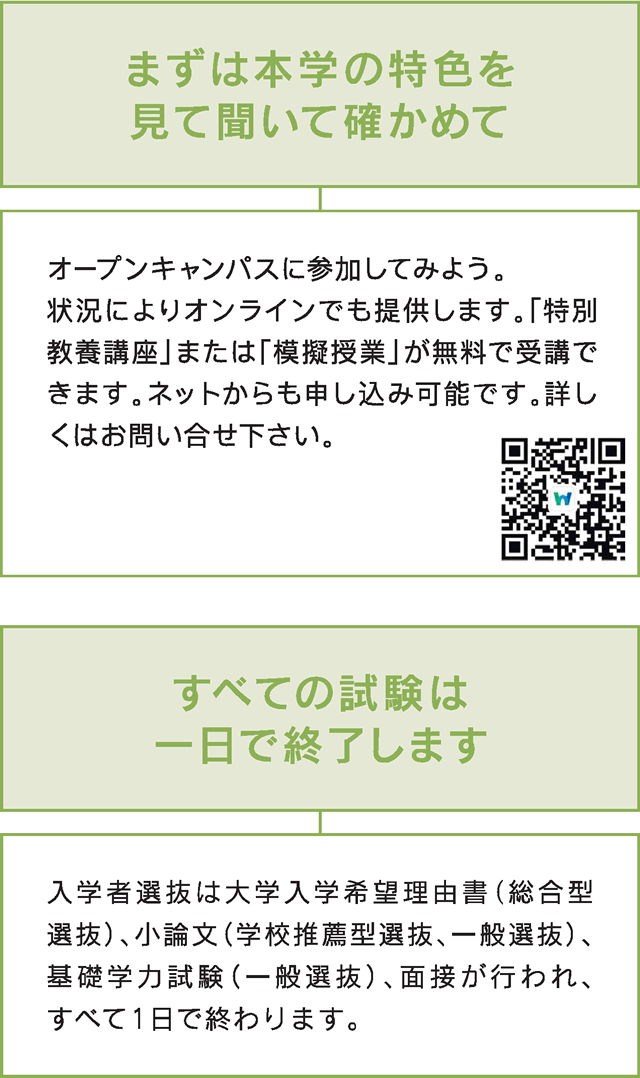※総合型選抜第1期・第5期は、対面とオンラインの両方で実施します。受験生は、どちらかの方法を選ぶことが出来ます。オンラインの場合、上記と時間が異なります。