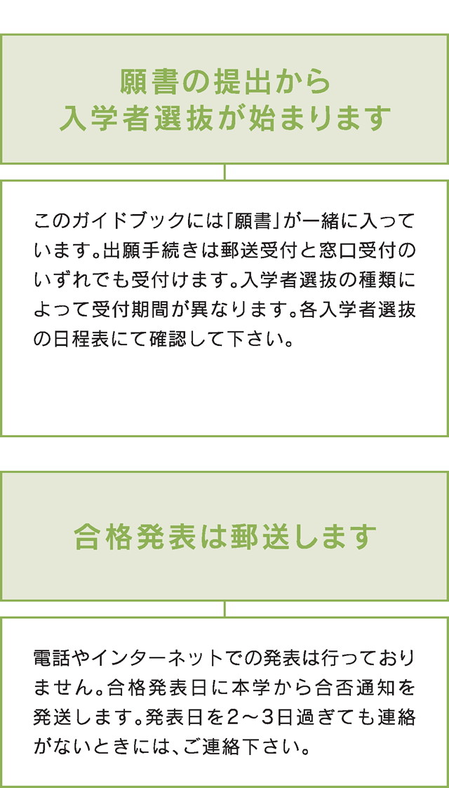 願書受付期間中に郵送・窓口のいずれかで手続きすること。