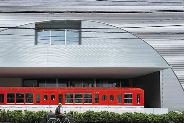 本学新校舎は、2018年4月に竣工した。外壁は、建学の精神となっている「質実剛健」という言葉を体現する頑丈な打ち放しコンクリート仕上げである。ステンレススチールパネルを外壁に添え、昨今の交通産業への女性の社会進出歓迎と華やかさを表現した。パネルは天候や四季の移ろいにふれ、建物の表情を演出する効果がある。