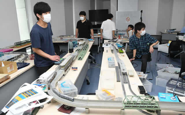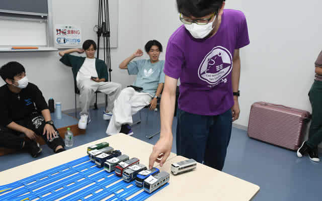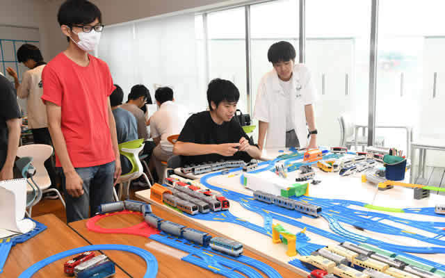 プラレールを使用したゲームや鉄道研究部によるダイヤ運転とジオラマ展示、鉄道員になった卒業生のフリートーク会などを行いました。