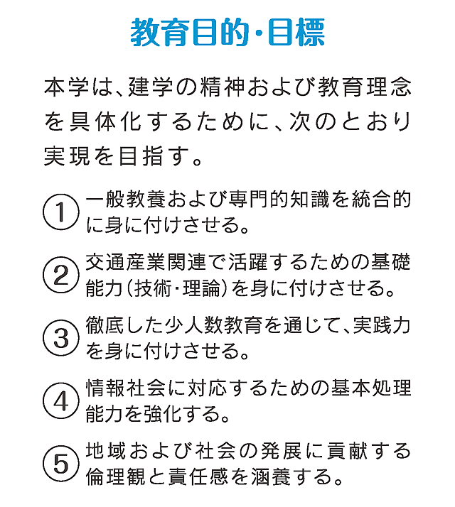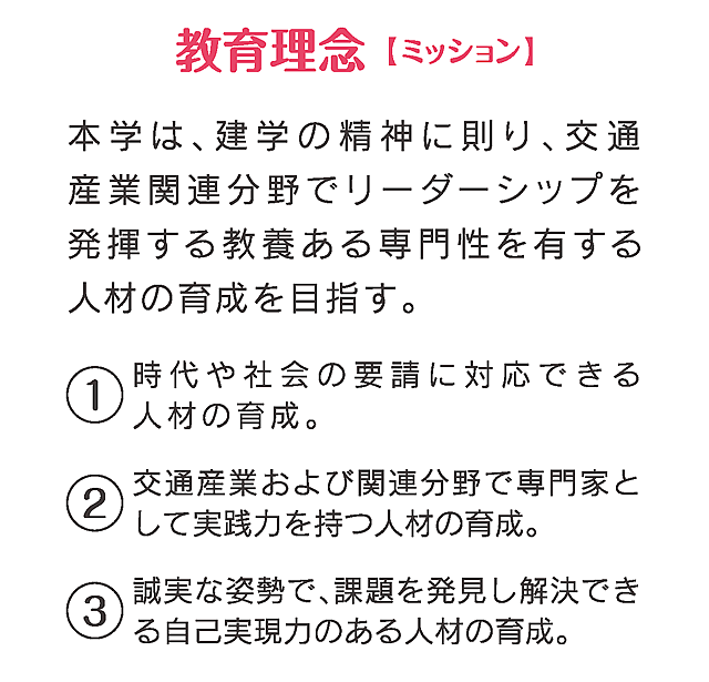 創立から半世紀を超えた今でも、本学は日本で唯一校名に「交通」を掲げる短期大学として、広く全国から向学心に燃える学生を迎え、鉄道・交通業界をはじめとするサービス産業界への就職や、四年制大学などの編入学へと多くの卒業生を送り出しています。