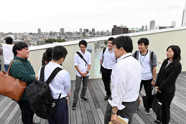 また、8階では卒業生とのフリートークや同窓会コーナーが設けられ、普段体験することができない卒業生との会話が弾んでいました。そして屋上のスカイテラスでは池袋や新宿のビル群、そしてスカイツリーを見ることができました。