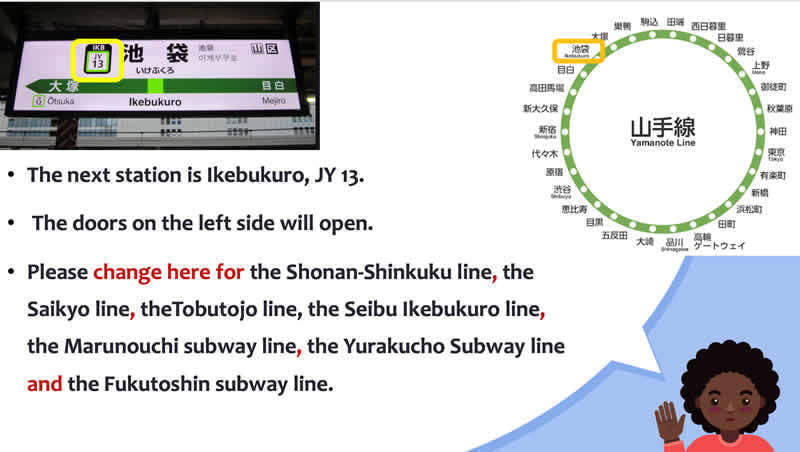 また、実際に車内で録音した英語のアナウンスを使いながらリスニングや音読の練習もしてもらいます。