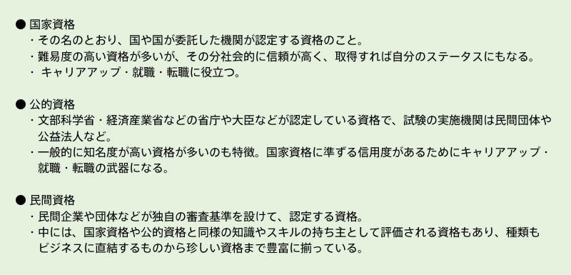 ●資格には種類がある! 国家資格・公的資格・民間資格の違いとは?