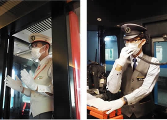 特急ロマンスカーの運転手さん(写真・左)と、通常業務に携わる乗務員さん(写真・右)とでは、制服もだいぶ違うんですね〜