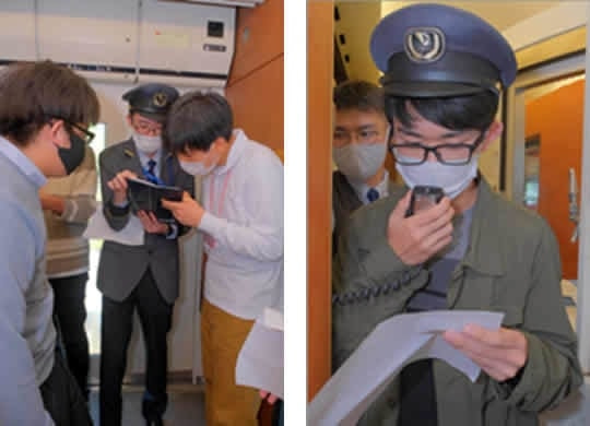さらに各ゼミから1名の代表者には、特別に車内アナウンスの体験をさせて頂きました。