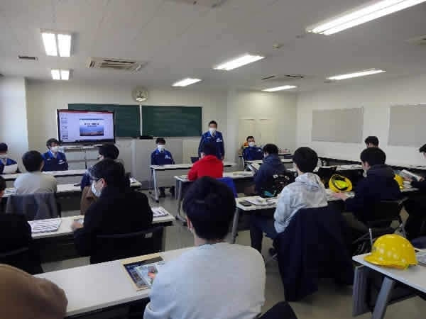 専門知識に裏付けられた丁寧な説明に、学生達も興味津々です!先輩、頼もしいですね!全国の物流を支えるために、日々安全を最優先して検査や修理が行われていることを知って、みんな感慨深げでした。