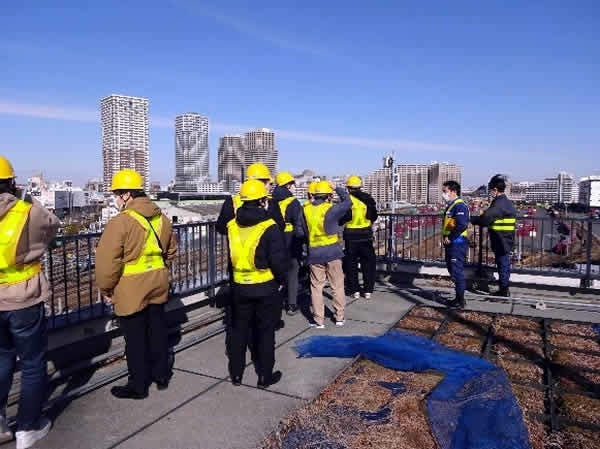 グループ1に同行して駅見学です。まずは駅の全景を見るため屋上へ向かいます。隅田川駅の広さはなんと東京ドーム5個分だそうです!東京の都心にあるにもかかわらず、本当に広いですね。