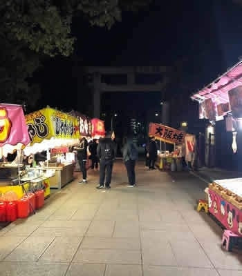 その熊手が、3つの露店で売られていました。それぞれ雰囲気が違っていて面白かったです。お客さんは荷物が小さかったり小さい子連れだったりして地元在住っぽい人ばかりでした。学生はたこ焼きやベビーカステラを食べたりおもちゃを買ったりもして雰囲気を楽しんでいました!
