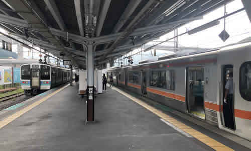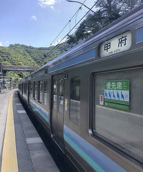 1日目は、10:21新宿駅発(中央線高尾行き特別快速)~11:04高尾駅着/11:09高尾駅発(中央本線甲府行き普通)~12:41甲府駅着/13:07甲府駅発(中央本線小淵沢行き普通)~14:00小淵沢駅着/14:05小淵沢駅発(中央本線松本行き普通)~14:41岡谷駅着/14:50岡谷駅発(中央本線・飯田線天竜峡行き普通)~15:01辰野駅着です! 途中で3本のあずさに抜かれながら、通過待ちの停車時間にホームに出て伸びをするなどしてゆったり進みました。