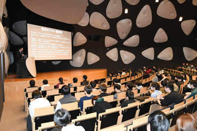 会場は6号館のコネクションホールでした。通常の教室よりだいぶ大きな会場で、緊張感がさらに増したようでした。