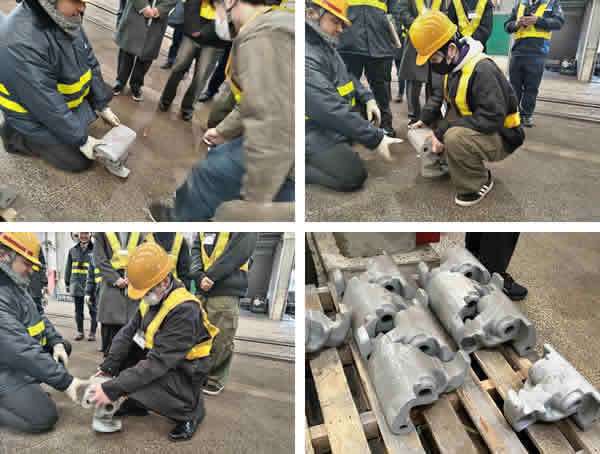 続いては、検修庫の見学。ヘルメットとベストを身につけ、万全の安全対策!