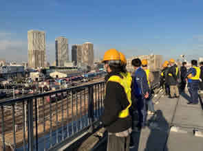 社屋の屋上にもお邪魔しました。隅田川駅の広さがよくわかります!