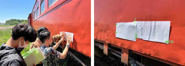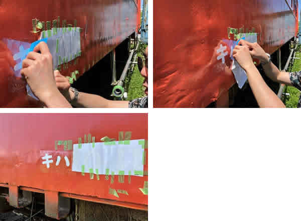 「カッティング―シート貼り」とは、車番や検査表記を車両に貼付する作業です。あの丸みのあるフォントでつくったものを車体に貼り付けることで、より国鉄感をだしていきます。