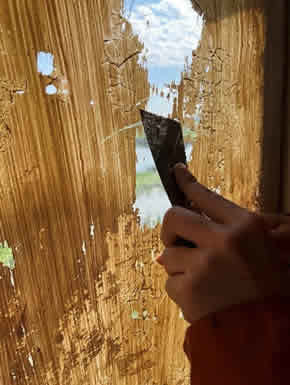 画角は悪いですが、雰囲気だけでも・・・ かなりしっかり塗られている様子。これをはがしていきます。