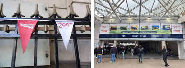 左はビクトリア駅、左はキングスクロス駅で撮った、鉄道200周年を記念するロゴ!