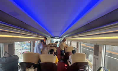 中川デルタ線を越えてもうすぐ名古屋につきます。到着前は天井が青くなるんですね。