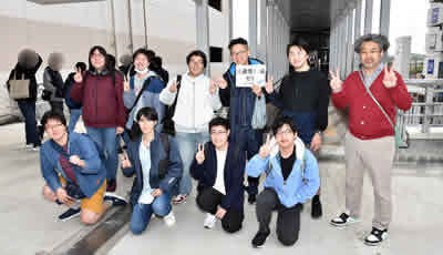 さて、目的地の下妻駅に到着したところで、ゼミごとに記念撮影。みんないい笑顔でした。