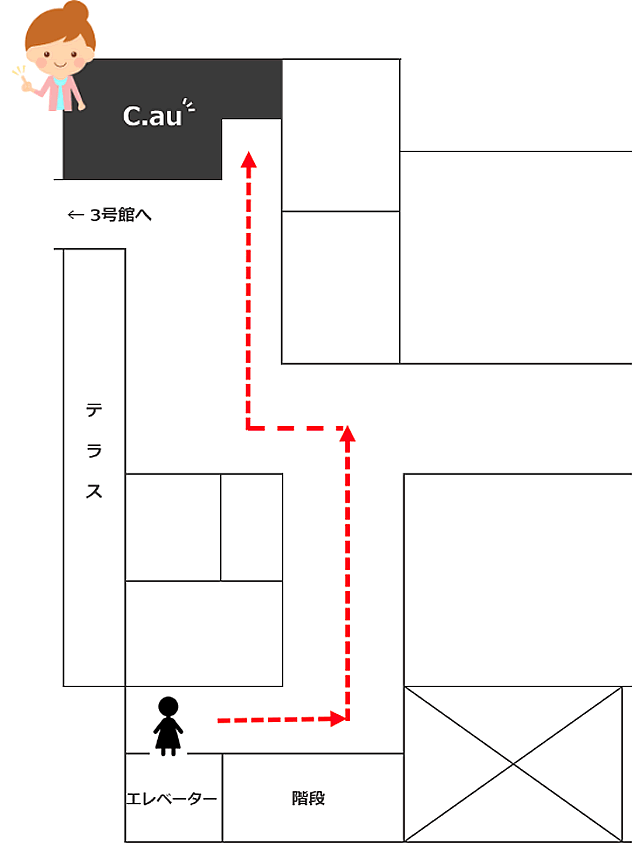 ● 直接C.au室に来室して予約(総合受付で学生証を見せて「C.auに行きたい」とお伝えください)