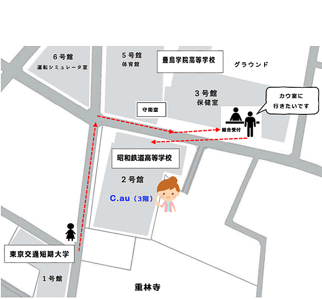 豊昭学園(豊島学院高校・昭和鉄道高校・東京交通短期大学)には、C.au(カウ)というカウンセリングルームがあります。C.auは、生徒・学生の皆さんが、日頃の人間関係や勉学のこと、部活のこと、家庭のこと、心身の健康等で困ったときに、何でも相談できるところです。