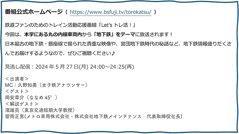 12月に、「交通英語」の授業の様子や鉄道研究部が取材を受けました。各種の授業や設備などの魅力を丁寧に紹介していただきました。