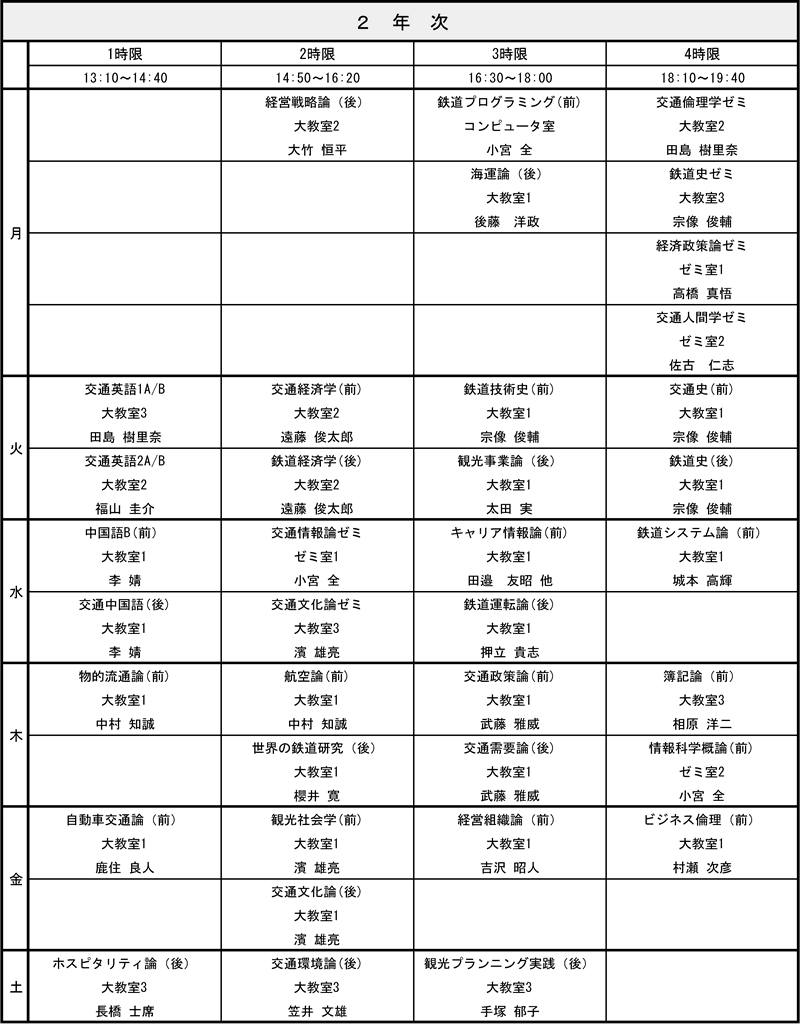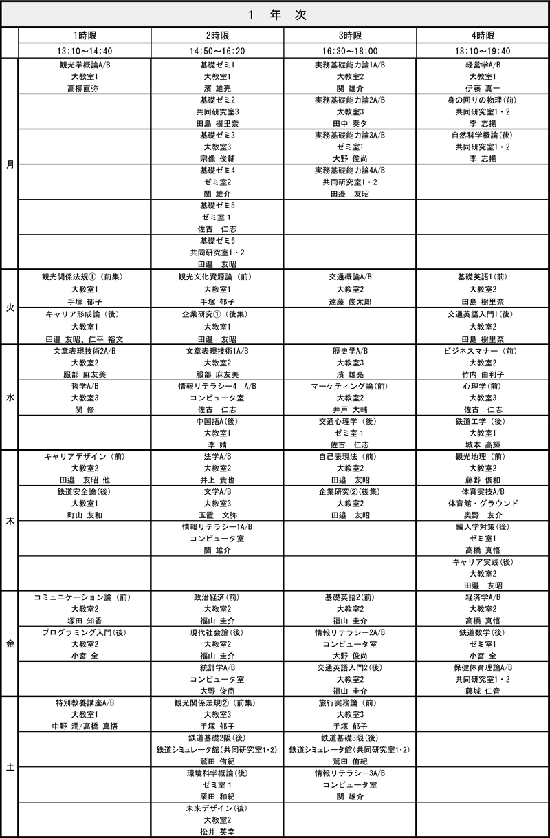 教室変更等があるので、最新の情報は1階掲示板で確認すること。