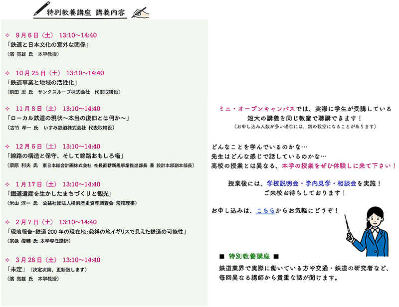 | 特別教養講座 | ミニ・オープンキャンパスに2回以上参加の方への特典 |